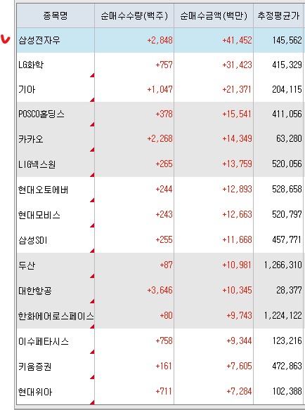 <연기금 순매수 상위 종목>