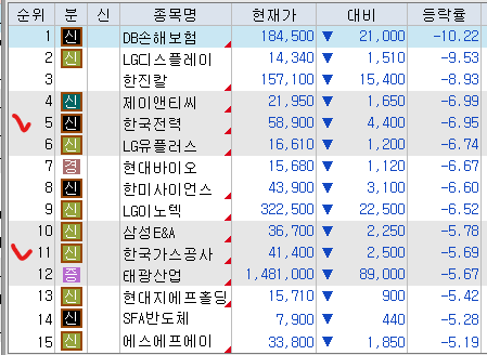 한편 금융, 지주사, 전력기기 업종 등이 하락