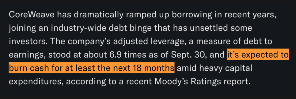 첫째, 부채 부담입니다. 벌어들이는 돈 대비 부채를 계산해 봤을 때 레버리지가 약 6.9배 수준이고, 최소 18개월 이상 현금 소진이 이어질 수 있다는 평가도 나옵니다. AI 수요가 조금만 둔화돼도 이 구조는 빠르게 부담이 될 수 있습니다.