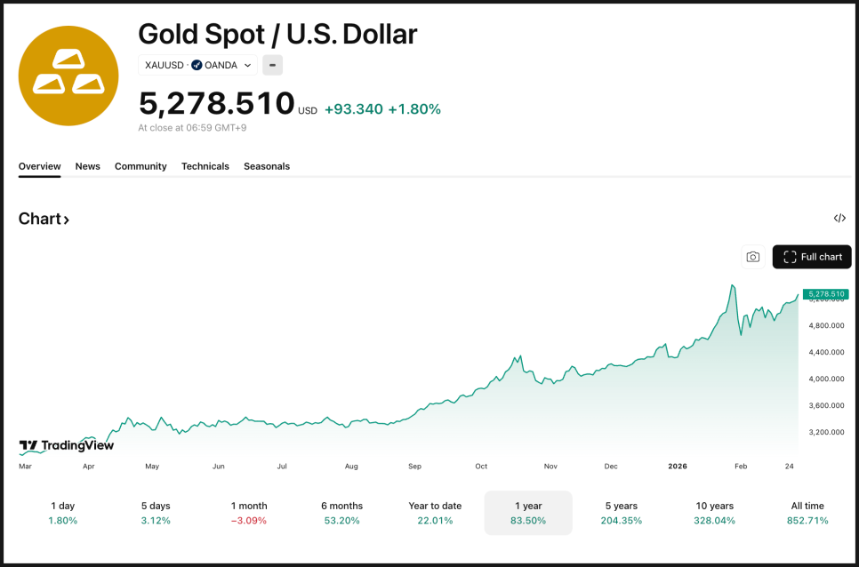 마지막으로 금 얘기를 해보겠습니다. 금 가격이 온스당 5,200달러를 넘어섰습니다. 올해 들어서만 20% 이상 상승했고, 7개월 연속 상승입니다. 이런 연속 상승은 1973년 이후 가장 긴 기록이라고 합니다.