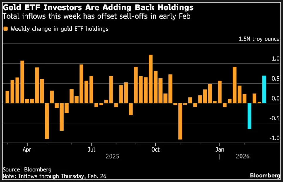 ETF 자금 흐름도 다시 플러스로 돌아섰습니다. 한때 빠져나갔던 자금이 다시 들어오고 있습니다. 단기 투기라기보다, 포트폴리오 차원의 방어적 배치가 늘어나는 모습입니다.