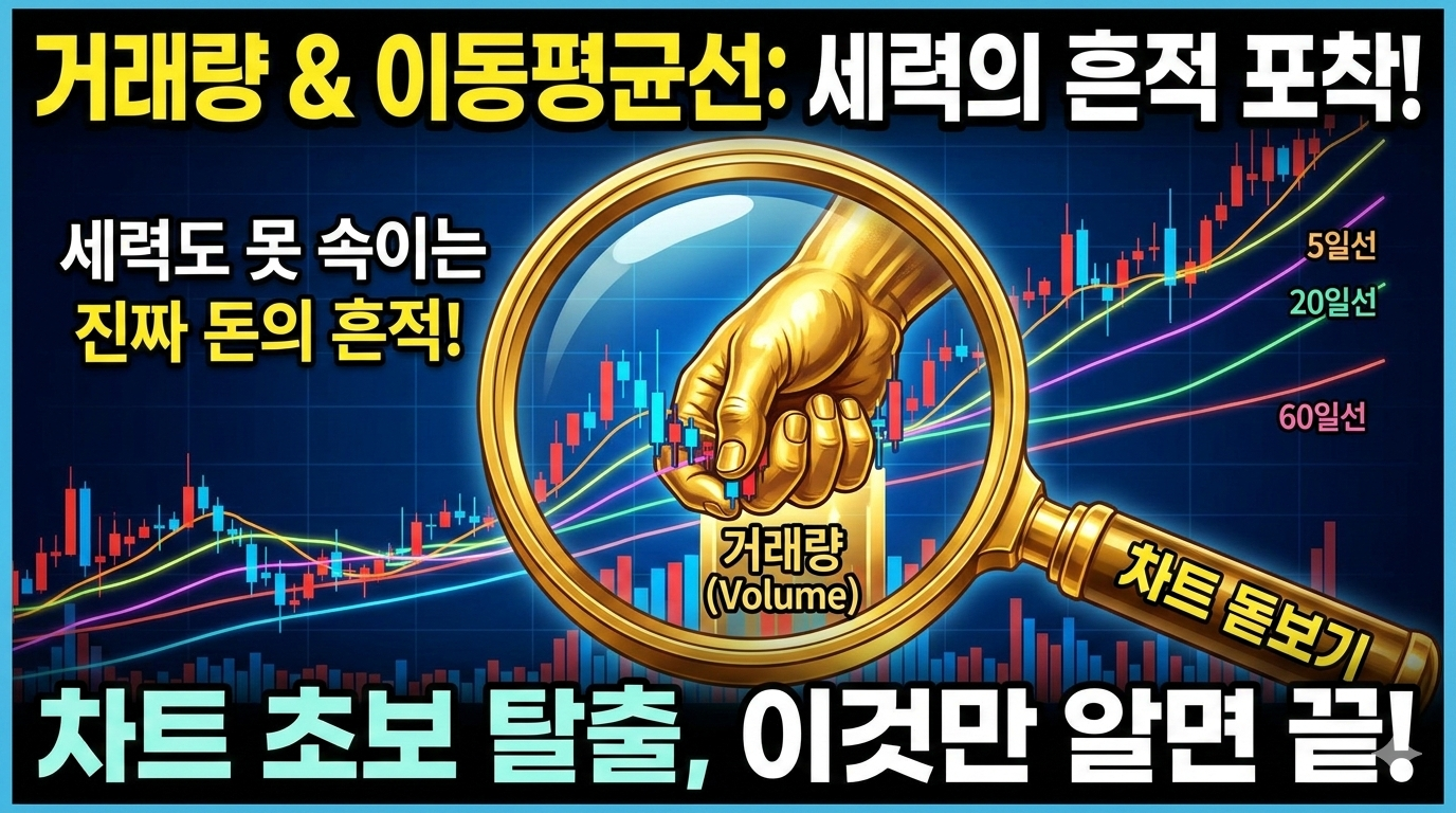 차트 분석은 '언제' 살지 알려주는 도구입니다. 복잡한 보조지표 다 버리고, 가장 기본적이면서도 강력한 '거래량'과 '이동평균선' 딱 두 가지만 기억하십시오.