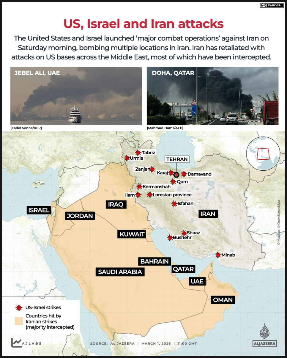 알자지라(Al Jazeera) 보도에 따르면 바레인에서는 이란 드론으로 추정되는 공격이 고층 건물을 타격했고, 미 해군 제5함대 본부가 미사일 공격을 받았다는 확인도 나왔습니다. 쿠웨이트의 알리 알살렘 공군기지도 탄도미사일 공격 대상이 됐지만, 대부분 요격됐다고 합니다.