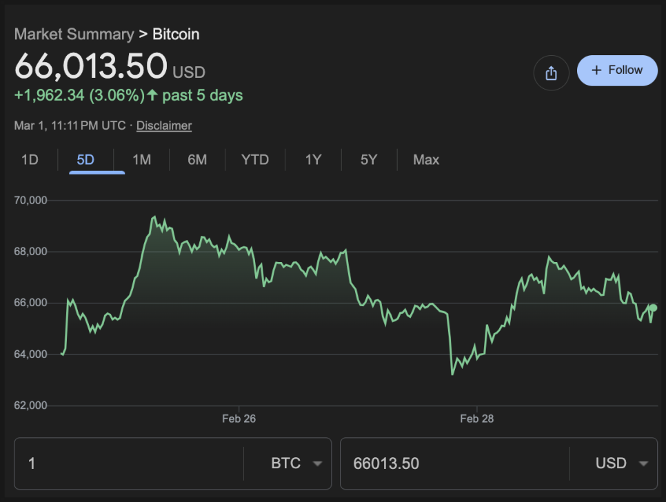 그래서 지금 가격이 6만 8천을 그대로 유지하지 못하고 다시 6만 6천 선으로 내려온 겁니다. 전쟁이 정말 빨리 끝날지를 확신하지 못하고 있는 거죠.
