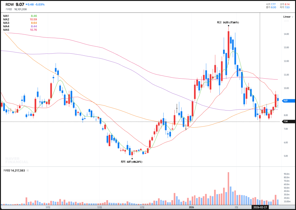 결국 현재 레드와이어는 기술적으로는 방향성을 앞둔 수렴 구간이고, 내부자 매도라는 심리 변수도 존재하며, 동시에 우주 섹터 전체에 대한 관심이 더욱 커질 수 있는 외부 모멘텀도 있습니다.