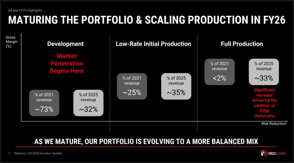 특히 주목할 부분은 제품 포트폴리오의 성숙도 변화입니다. 2021년 상장 당시에는 매출의 약 75%가 개발 단계 프로그램에서 발생했는데, 기술 개발 중심의 고위험 구조였다는 의미입니다. 그러나 2025년 말 기준으로는 전체 매출의 3분의 2 이상이 생산 단계로 이동하고 있으며, 특히 무인항공체계(UAS) 포트폴리오의 상당 부분이 고마진 대량 생산 단계에 진입하고 있다고 설명했습니다. 향후 매출뿐 아니라 마진 개선 가능성과도 직결되는 대목입니다.