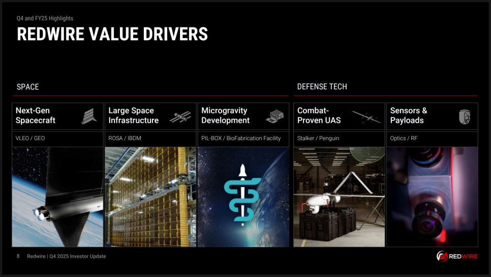 또 하나 중요한 변화는 사업 구조 개편입니다. 2026년부터 레드와이어는 ‘스페이스(Space)’와 ‘디펜스 테크(Defense Tech)’ 두 개 세그먼트로 재편됩니다. 스페이스 부문은 차세대 위성 플랫폼, 대형 우주 인프라, 미세중력 기반 연구를 포함하고, 디펜스 테크 부문은 전투 검증된 무인항공기, 센서, 페이로드를 포함합니다. 이는 투자자들에게 사업 가시성을 높이고, 각 부문의 성장 동력을 보다 명확히 보여주기 위한 전략적 조치로 해석됩니다.