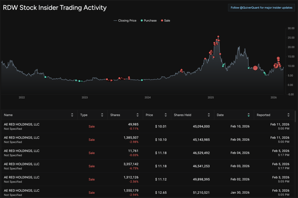 이런 기술적 흐름과 맞물려 투자자 심리에 영향을 줄 수 있는 이슈가 하나 더 있었습니다. 2월 초 AE 레드 홀딩스(AE Red Holdings, LLC)가 약 143만 주를 평균 10.10달러에 매도해 약 1,450만 달러 규모의 거래를 진행했다는 공시입니다.