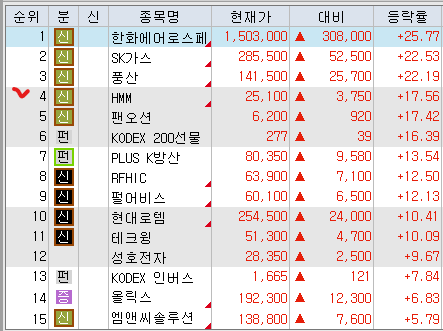 중동 지정학적 위기 고조로 방위산업 테마 상승(한화시스템, LIG넥스원, 빅텍 상한가, 한화에어로스페이스 +25.77%, 풍산 +22.19%, 현대로템 +10.41%), 정유 테마 상승(흥구석유, S-oil, 한국석유, 한국Ankor유전 상한가), LPG, LNG, 도시가스 테마 상승(대성에너지, 극동유화, 중앙에너비스, 지에스이 상한가), 드론 테마 상승(케이알엠 상한가), 해운 테마 상승(흥아해운, 대한해운, STX그린로지스 상한가)
