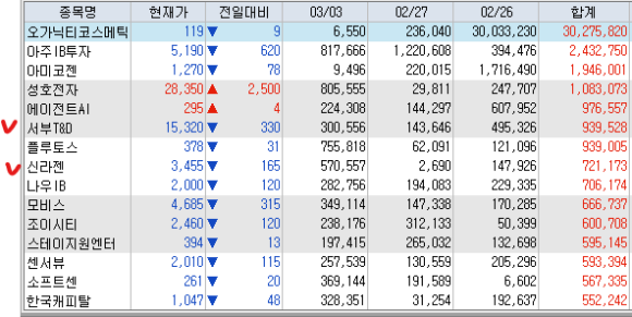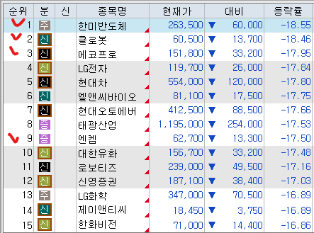 반면, 미-이란 분쟁에 따른 국내 산업계 전반적인 피해 우려로 반도체 관련주, 2차전지 관련주, 로봇 관련주, 인터넷 대표주, 항공사 등 여행 관련주 등이 크게 하락