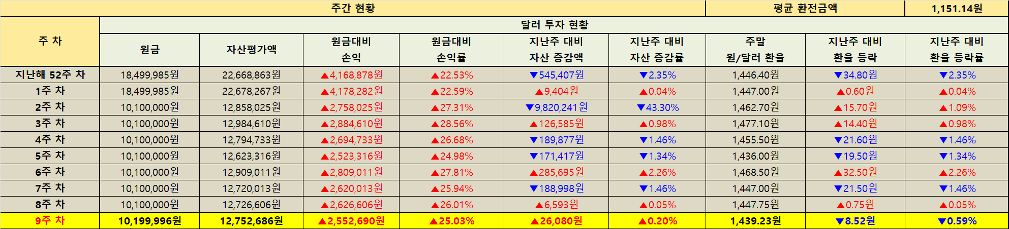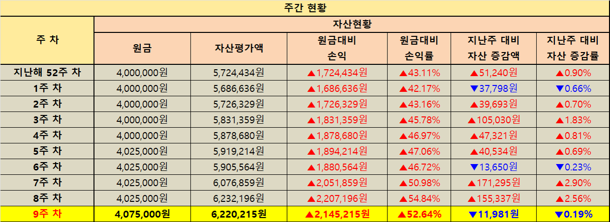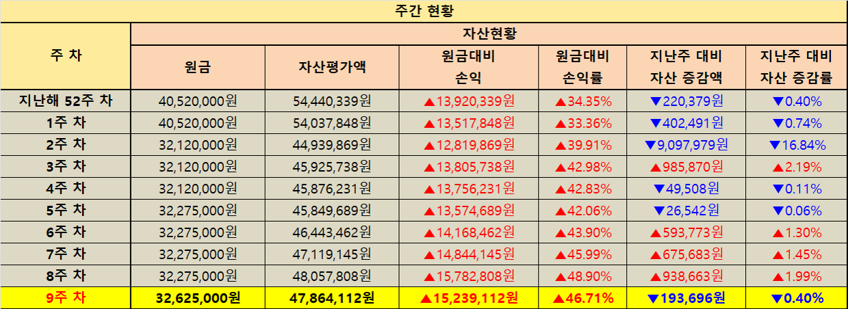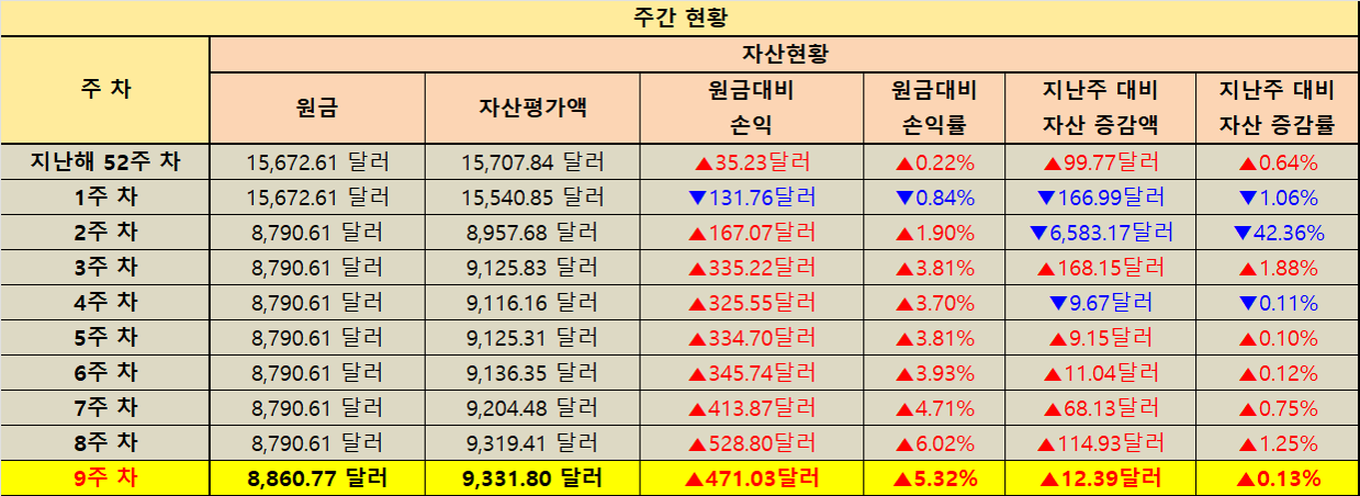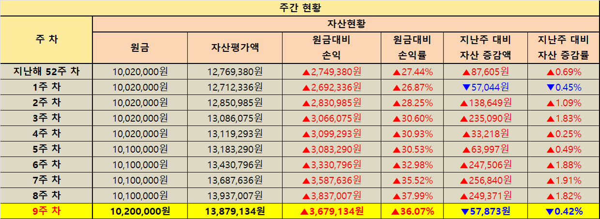 지난주 대비 자산 증감 현황