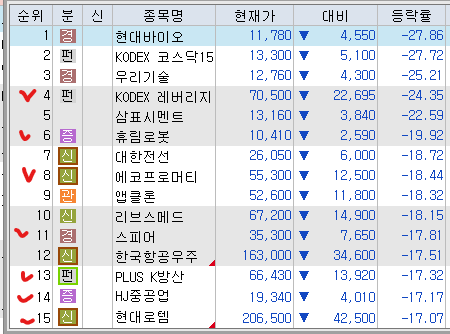 <시총 1조 원 이상 등락률 상위 종목>