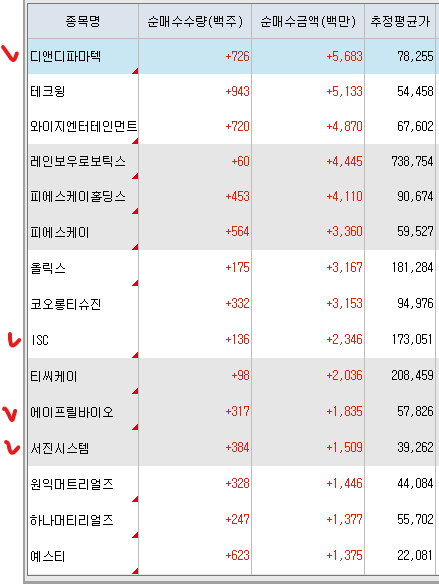 <연기금 순매수 상위 종목>