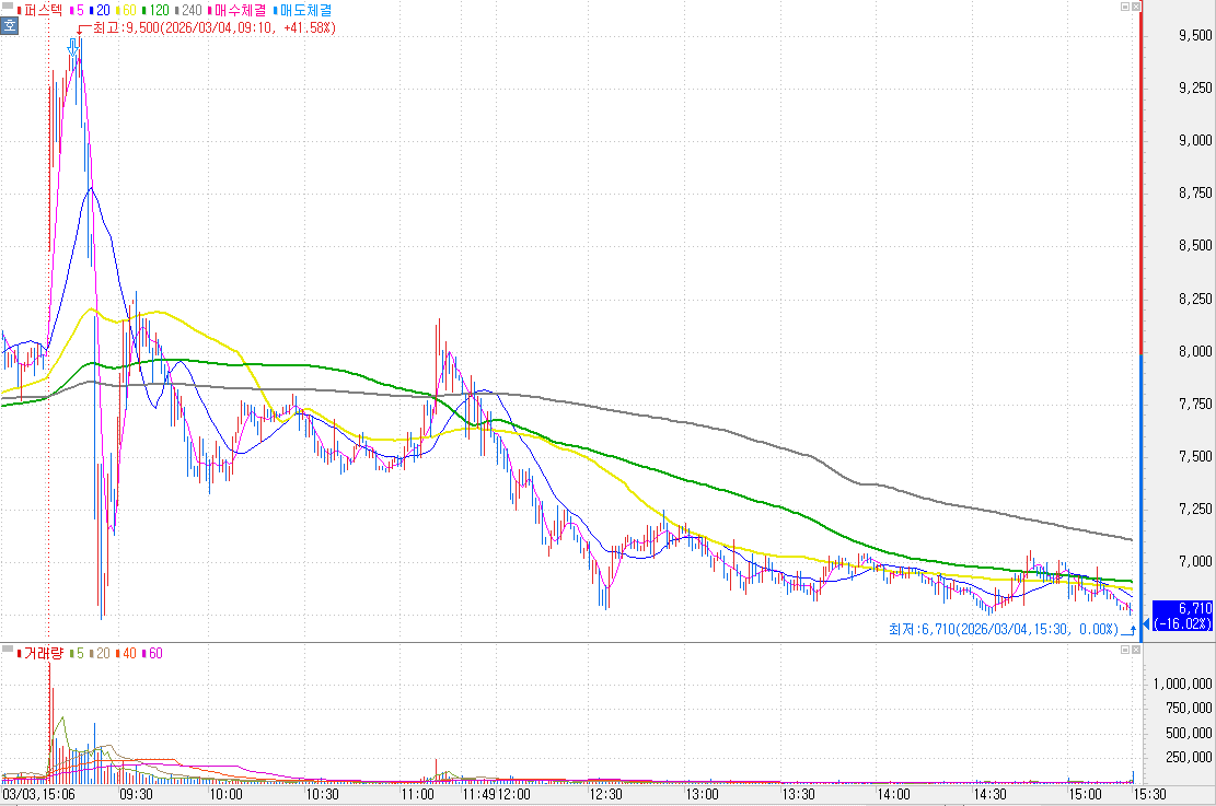 <퍼스텍 분봉차트>