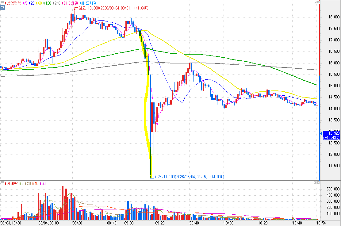 <삼양컴텍 분봉차트>