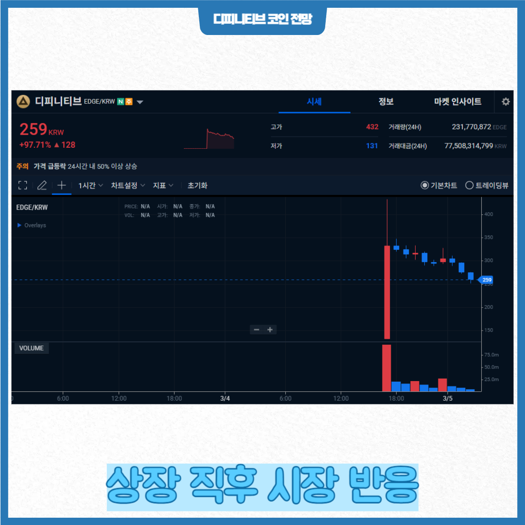 디피니티브(EDGE)의 업비트 상장은 단기적으로 강한 시세 반응을 만들고 투자자 관심을 집중시키고 있습니다.