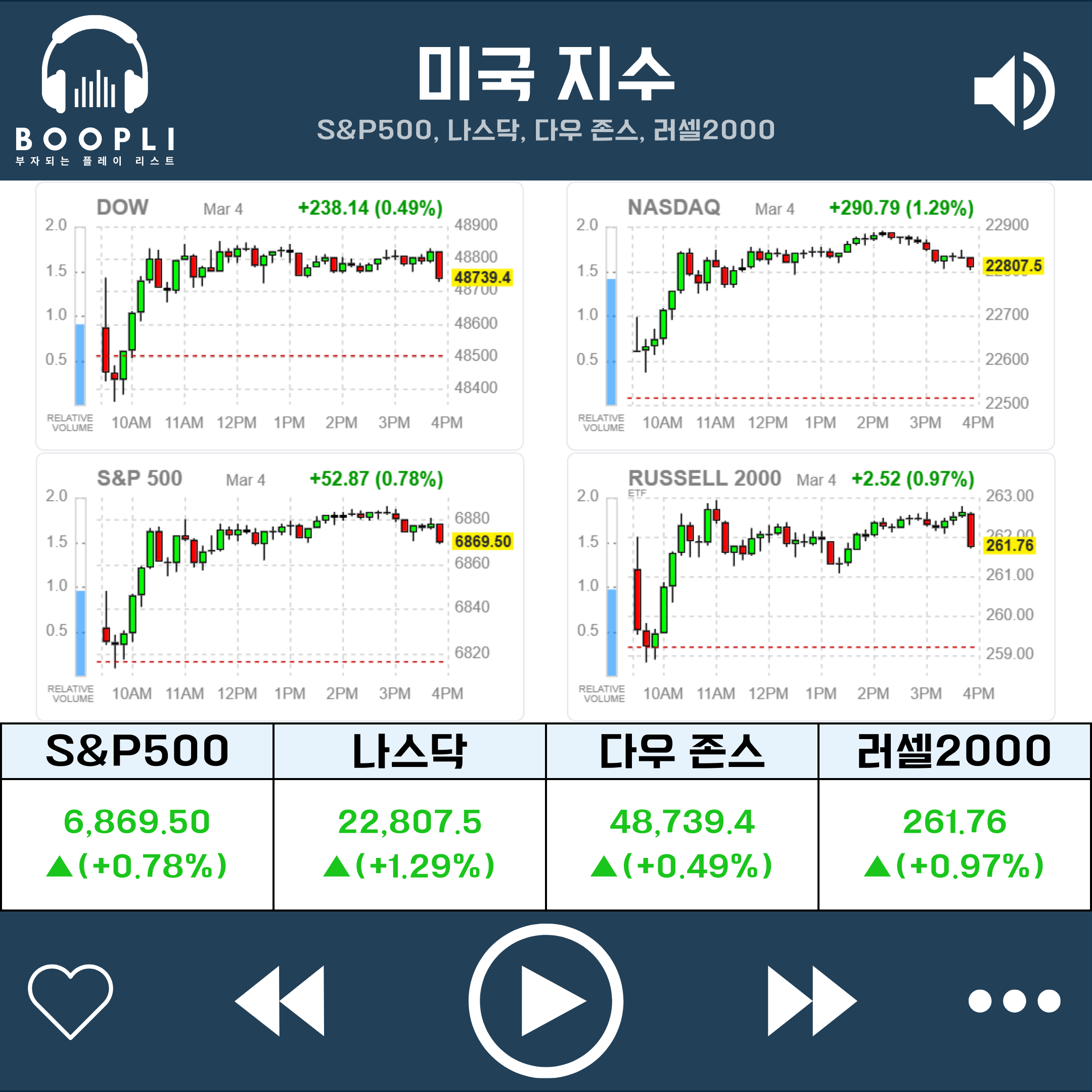 S&P500, 나스닥, 다우 존스, 러셀2000