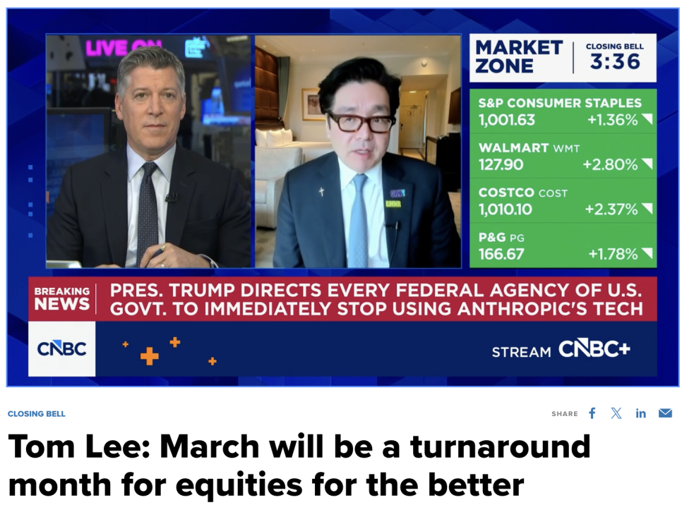 비트마인 회장이자 펀드스트랫(Fundstrat) 소속의 톰 리(Tom Lee)도 "잠재적인 변곡점이 될 수 있다"며 3월 반등 가능성에 힘을 실었습니다.