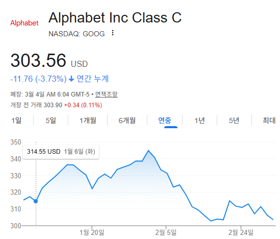 구글의 모기업인 알파벳의 주가는