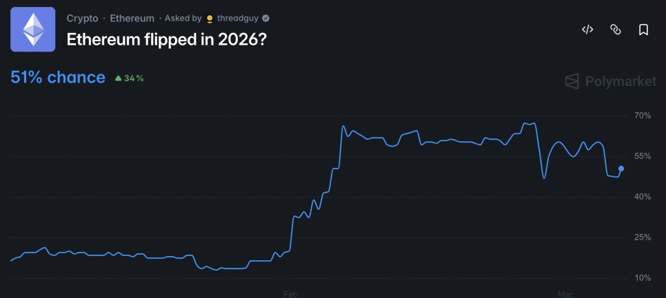 폴리마켓에서는 올해 안에 이더리움이 시가총액 2위 자리를 다른 코인에게 내줄 가능성을 거의 반반으로 보고 있는데요. 현재 테더(USDT)의 시가총액이 이더리움보다 약 660억 달러 낮은 수준이니, 터무니없는 시나리오만은 아닙니다. 앞으로 이더리움이 가스 한도를 2억까지 늘리는 '글램스터담(Glamsterdam)' 업그레이드를 진행한다면, 오늘 다룬 논쟁은 더 뜨거워질 수밖에 없습니다.