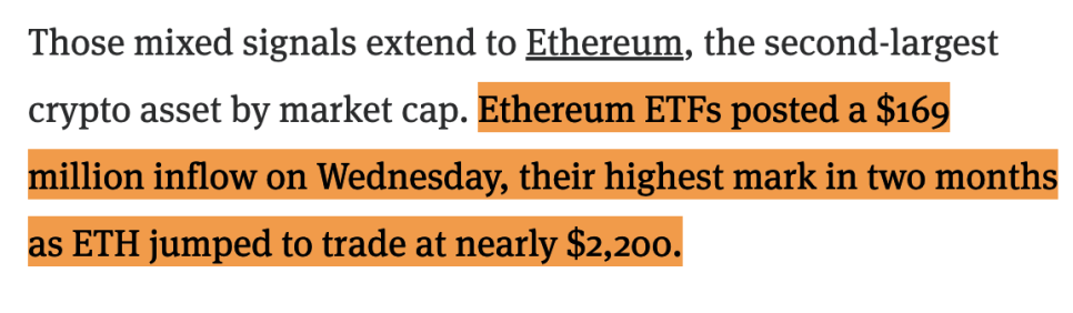 이번 주에는 이더리움도 비트코인과 함께 올랐는데요. 이더리움 ETF에 1억 6,900만 달러가 유입됐고, 가격도 2,200달러 근처까지 반등했습니다. 두 달 만에 최대 ETF 유입이었으니 나쁘지 않은 신호처럼 보였는데요.