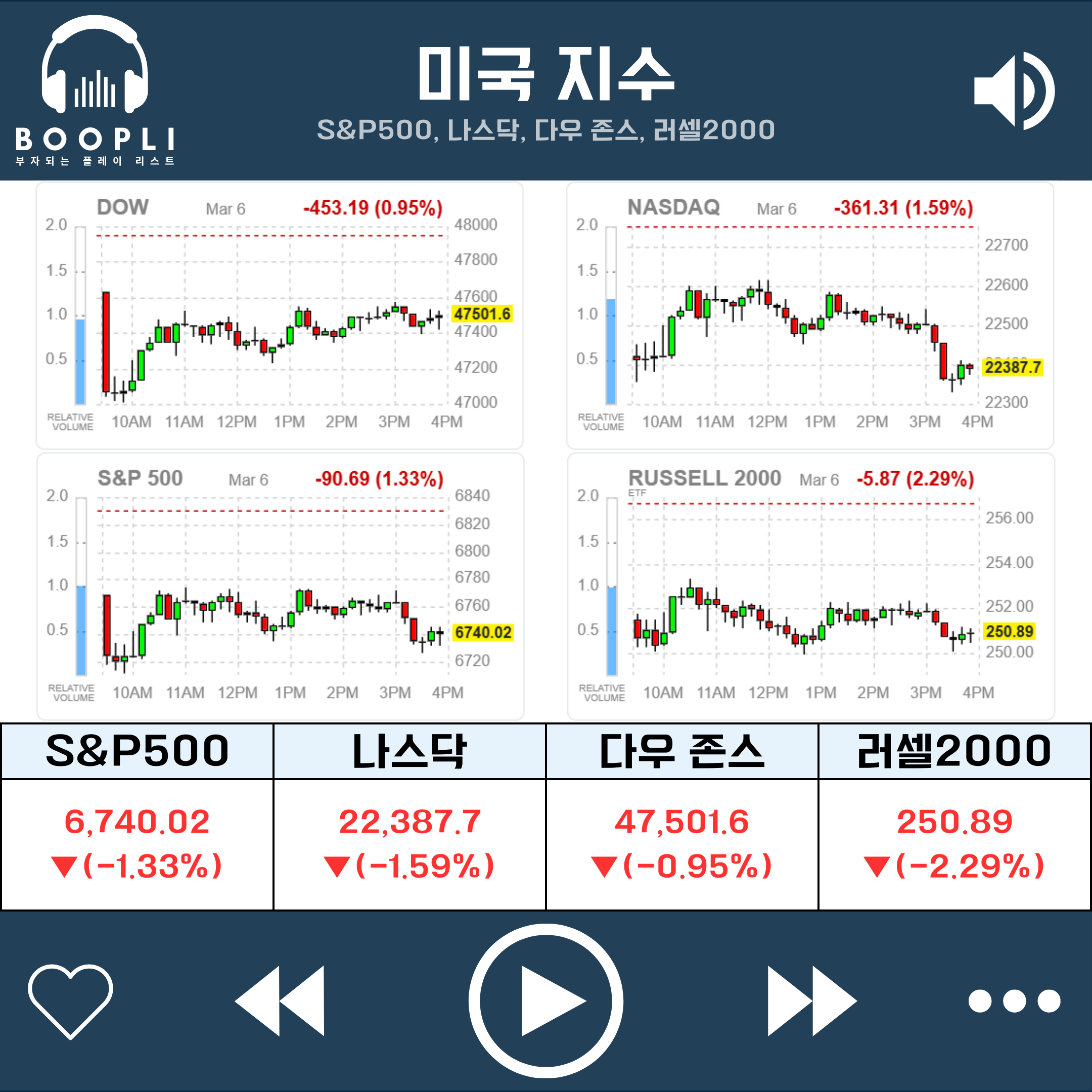 S&P500, 나스닥, 다우 존스, 러셀2000