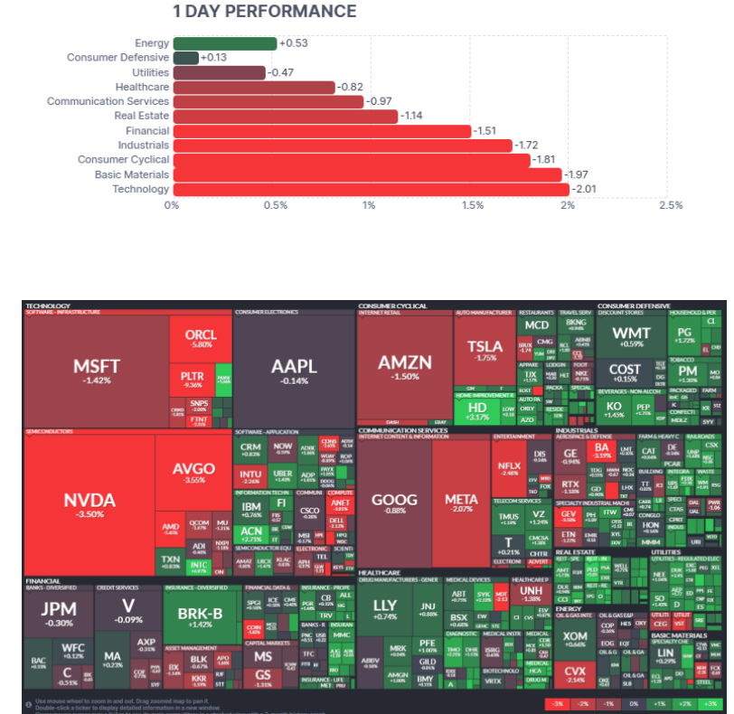 기술주 특히 반도체 섹터가 크게 하락했습니다.