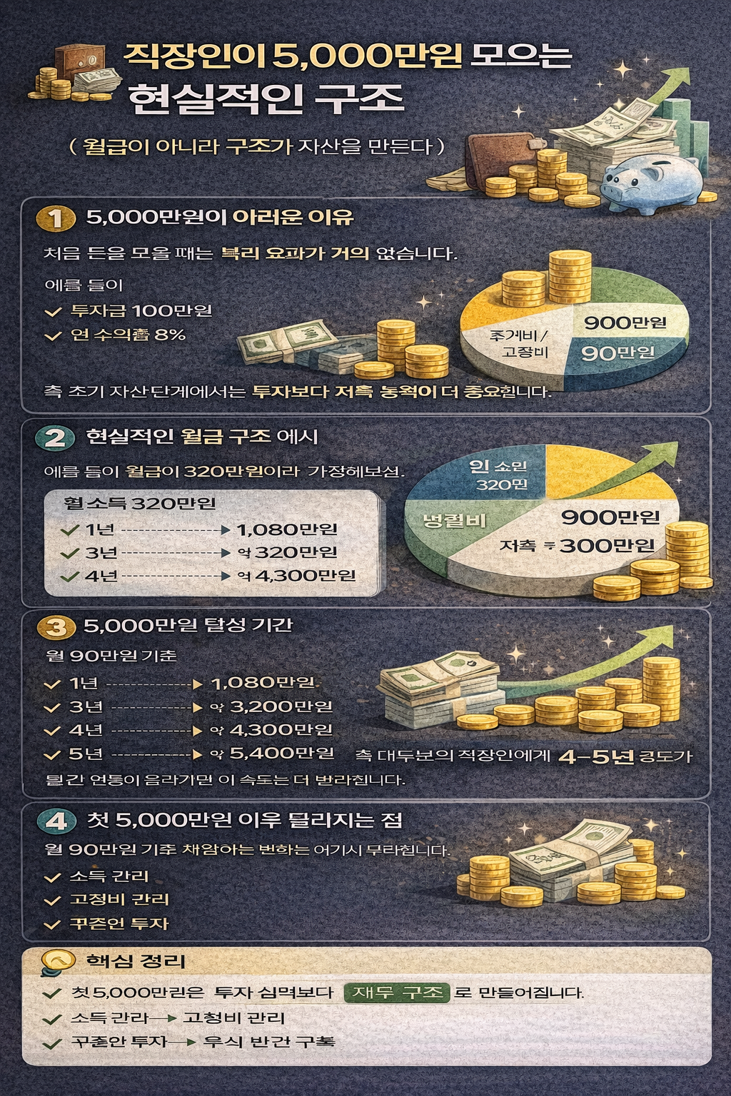 첫 5,000만원은 노동소득 + 소비관리로 만들어집니다.
