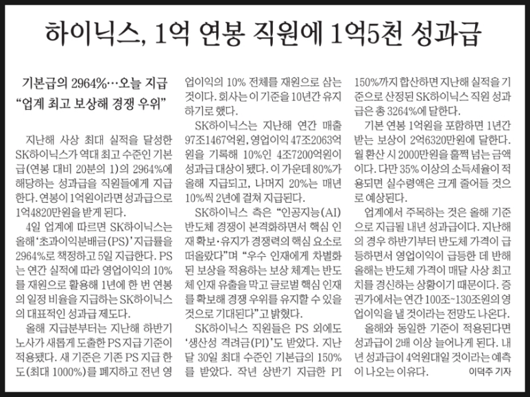 하이닉스 성과급은 너무너무