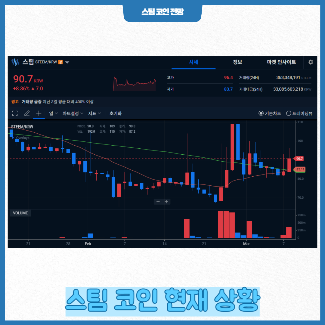 최근 기준으로 스팀 코인은 시가총액 규모가 크지 않은 중소형 알트코인에 속합니다.