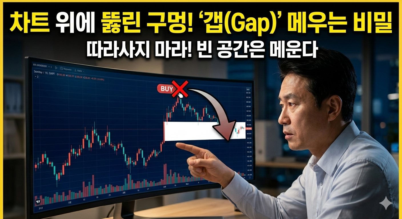 차트 위를 훌쩍 뛰어넘는 이 '빈 공간'이 바로 계좌의 승패를 가르는 중요한 단서가 됩니다.