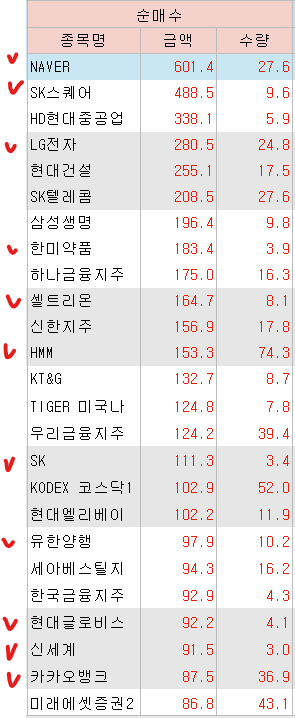 <외국인 매수 종목>