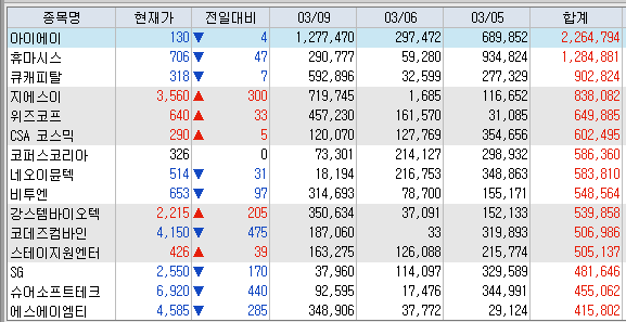 <연기금 순매수 상위 종목>