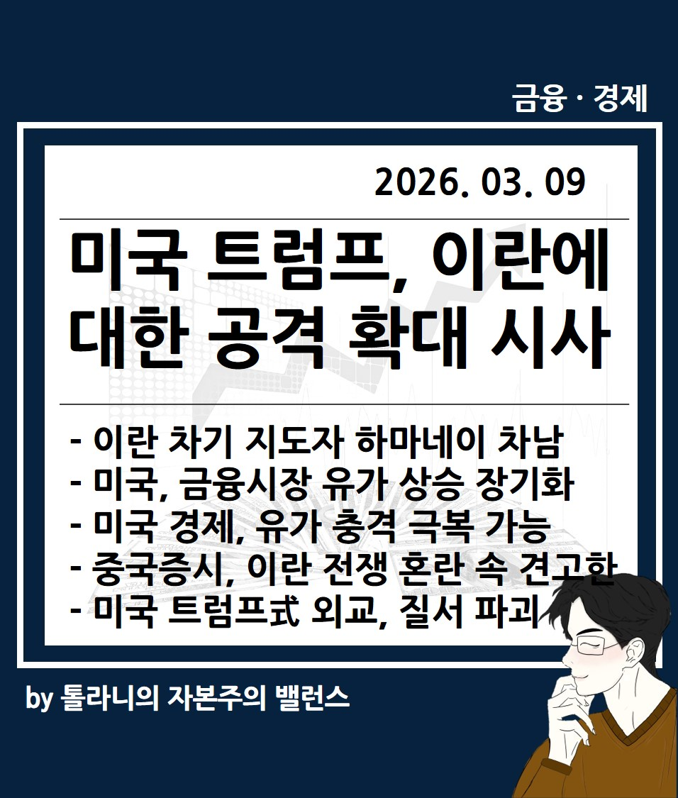 미국 트럼프의 이란에 대한 무조건 항복 발언 이후, 지상군 투입에 대한 공격 확대를 시사하는 발언까지 미국과 이란의 전쟁 양상이 점점 커지고 있으며, 이란은 차기 지도자를 하메네이 차남 모즈타바 하메네이를 선출하면서 미국의 항쟁 의지를 굳건히 하고 있는데요.