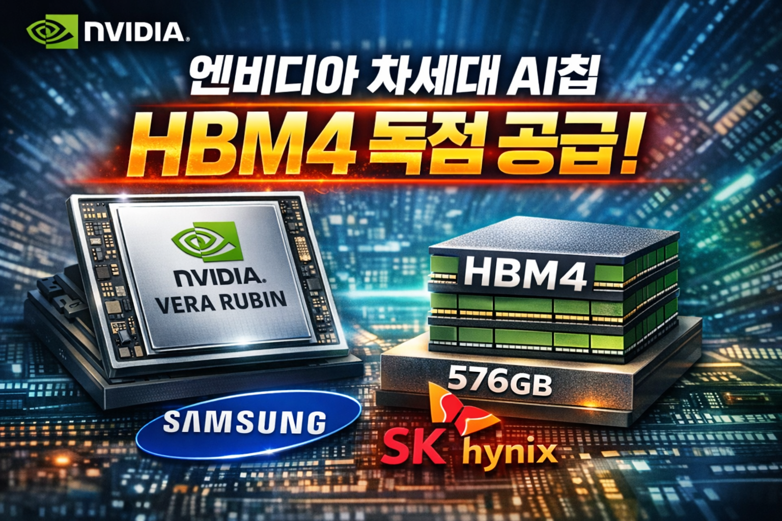 AI 산업의 중심에 있는 NVIDIA가 차세대 AI 가속기 Vera Rubin AI accelerator를 올해 하반기 출시할 예정인데, 이 칩의 핵심 메모리인 HBM4 공급사로 한국 기업 두 곳만 선정된 것으로 알려졌다.