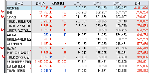 매도 : 두산우 두산에너빌리티 한전KPS STX엔진 테크윙(+43.02%) HJ중공업 SK오션플랜드 에치에프알 Tiger차이나전기차 우진엔텍 SOL조선TOP3플러스 티엑스알로보틱스