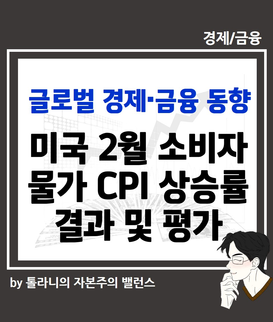 미국 2월 소비자물가지수 CPI 상승률이 현지 시간 11일 발표하였습니다. 저년동기대비 보합 및 시장예상치에 부합하였는데요. 다만 중동의 지정학적 리스크로 인한 인플레이션 우려는 높은 상황입니다.