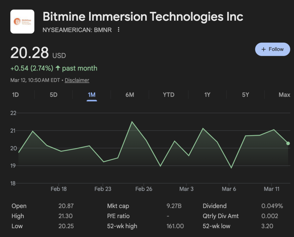 그리고 이 모든 영역에 연결고리를 갖고 있는 비트마인 이머젼은 지난 한 달 동안 박스권에 갇혀 있는 상태입니다. 박스권이 끝나면 위쪽이든 아래쪽이든 무빙이 나올 텐데, 그게 언제가 될지는 지켜봐야겠습니다.