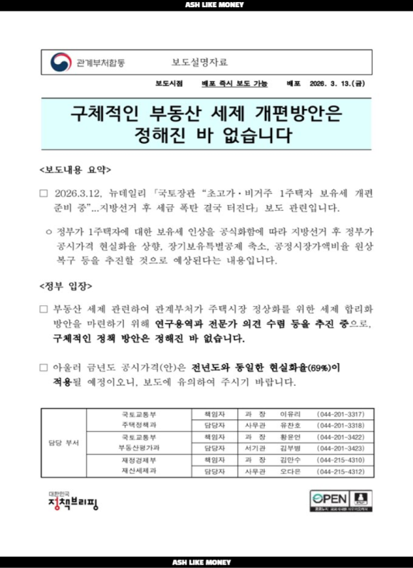 국토부장관의 1주택자에 대한 세금발언