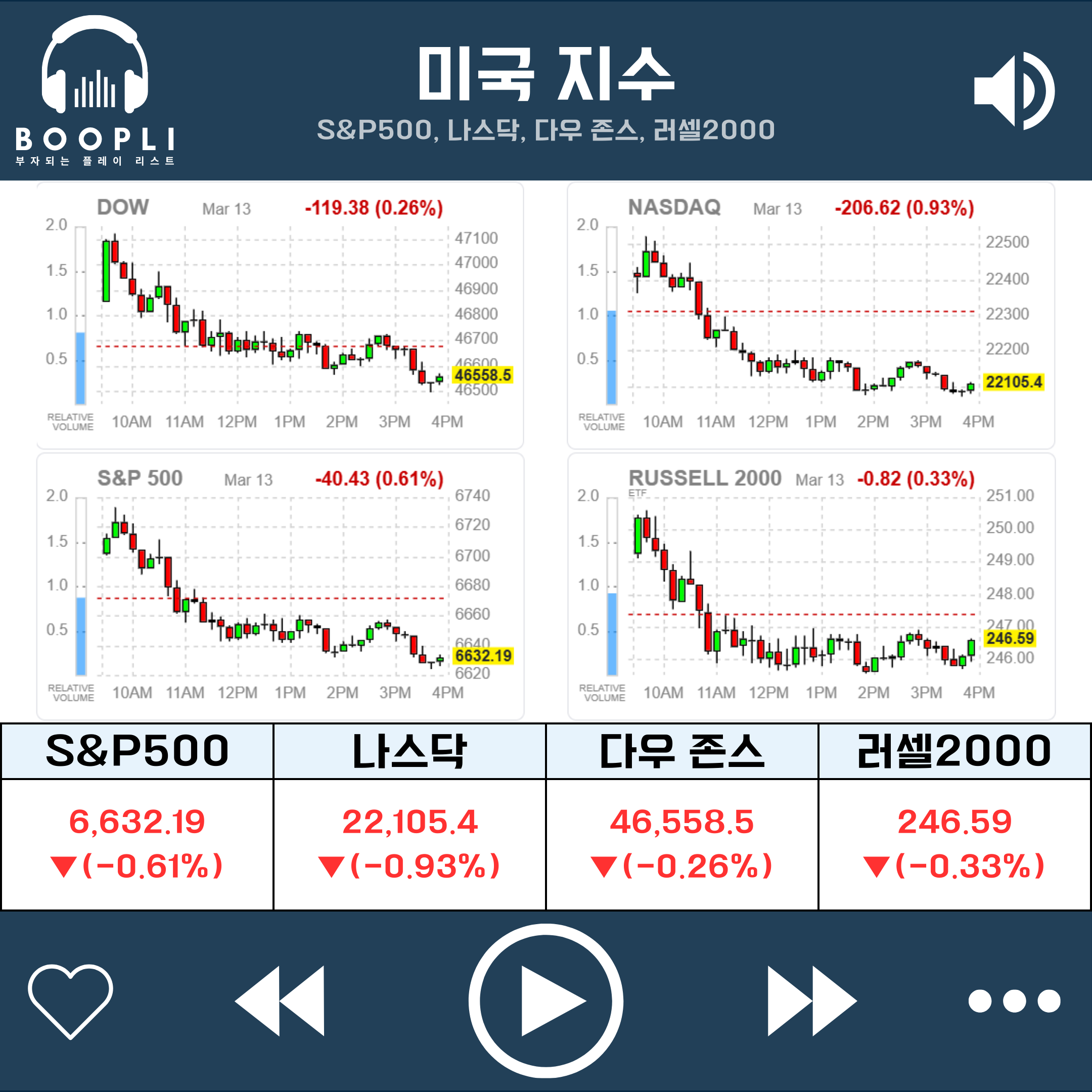 또한 이탈리아 외무부가 호르무즈 해협 통항을 위해 이란과 협상 중이라는 파이낸셜타임스(FT) 보도를 공식 부인한 데 이어 미국이 중동 지역에 상륙강습함과 약 2,500명의 해병대를 파견했다는 소식이 전해지자 지정학적 긴장감이 재차 고조됐고, 이에 따라 국제유가가 반등하며 증시 하락 압력이 더욱 확대됨