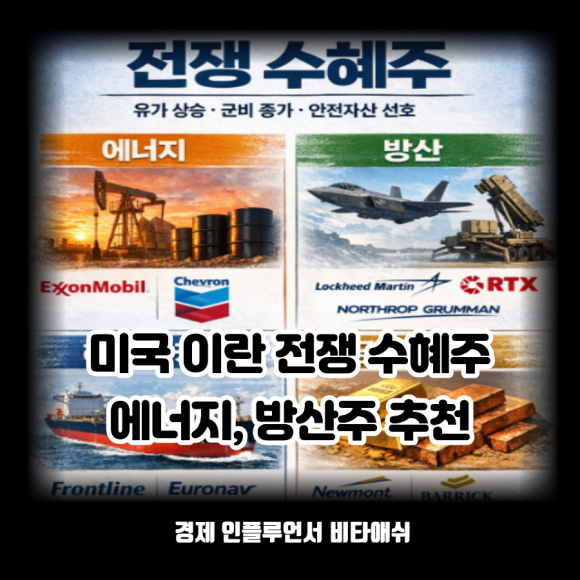 오늘은 미국 이란 전쟁 수혜주 에너지 방산 주식 추천에 대한 포스팅입니다.