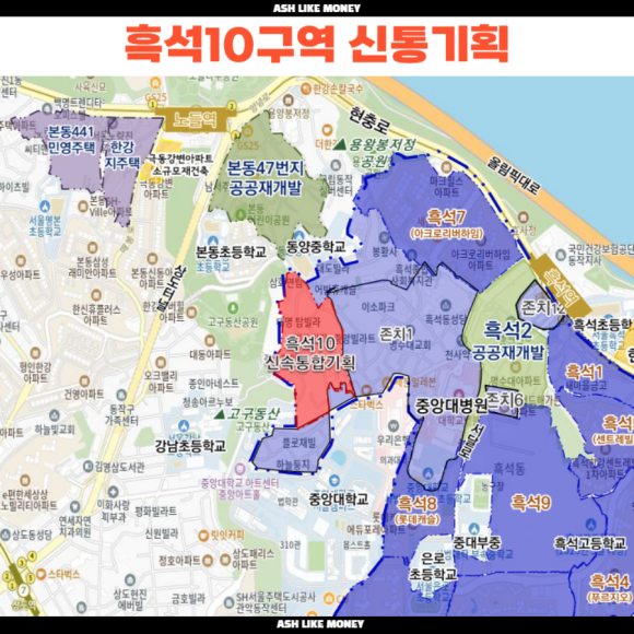 따라서, 재정비촉진지구 내 촉진구역이라도 존치정비구역인지, 존치관리구역인지 꼭 확인해야 한다. 존치정비구역은 흑석10구역이 추진하는 곳이고 재개발이 가능한 곳이고 흑석12구역은 존치관리구역에서 풀려야 재개발이 진행되는 곳이다. 가칭 흑석12구역은 엄밀히 말해 아직 존치관리구역이고 존치관리구역에서 해제되어야 재개발이 시작될 수 있다. 현재는 신속통합기획에 의해 재개발을 추진 중이다. 하지만 신통기획에 선정되지 않는다면, 내 재산을 날리는 것이니 조심해야 한다.