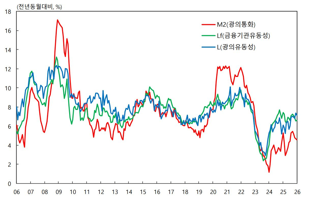 2026년 1월 기준 국내 통화 및 유동성 동향 관련하여 한국은행 보도자료를 통해 알아보도록 하겠습니다.