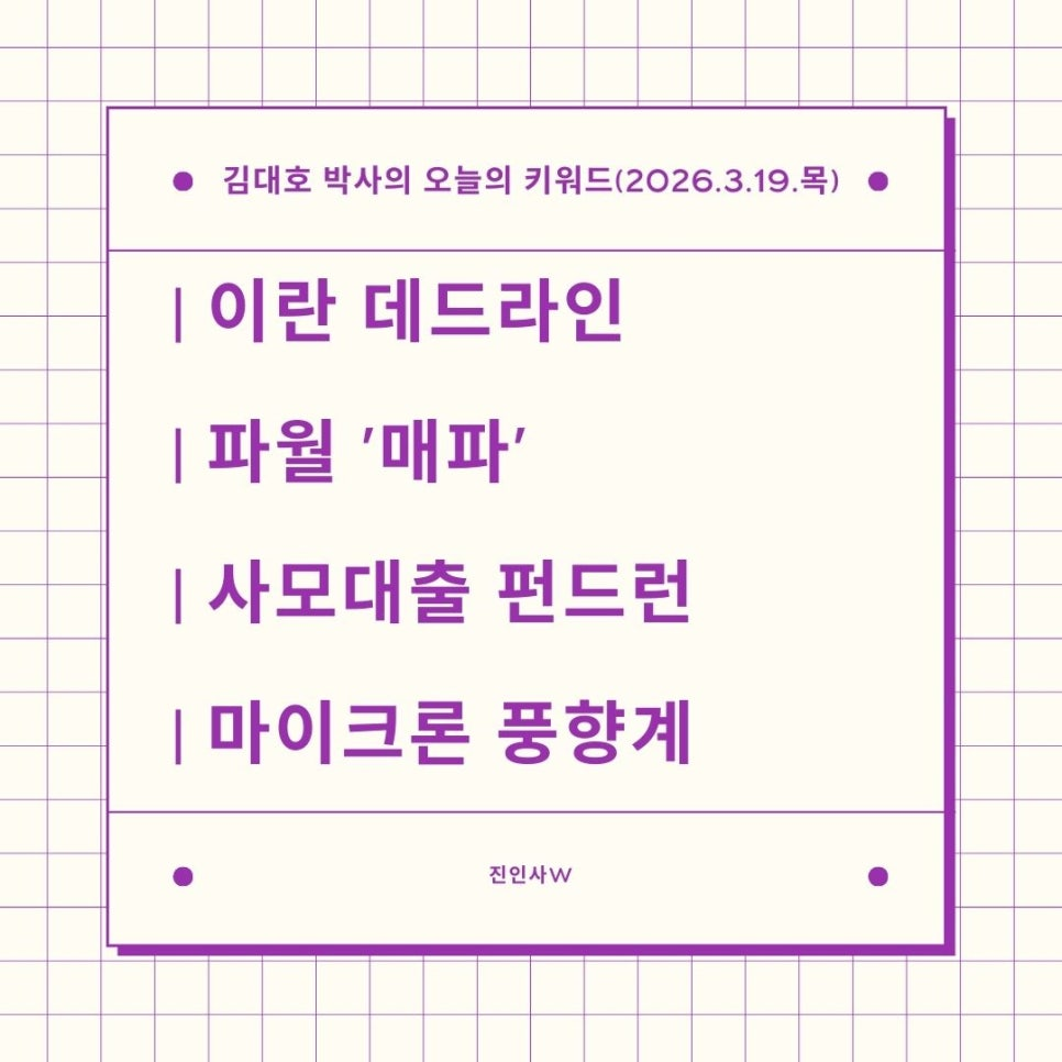 #김대호박사의오늘의키워드 #sbsbiz채널 #경제흐름읽기 #거시경제읽기 #세계주요이슈읽기 #한국경제주요이슈보기 #주식들여다보기 #부동산들여다보기 #시간은소중히쓰자 #이란데드라인 #파월매파 #사모대출펀드런 #마이크론풍향계