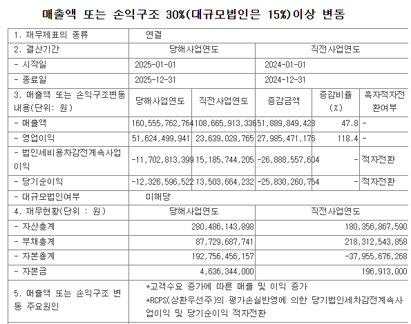 2025년 실적은 전년대비 매출액 47.8%, 영업이익은 118.4%증가했습니다. 2026년에는 매출액 2,000억원이상, 영업이익은 700억원 이상을 기록할 것으로 전망되고 있습니다.