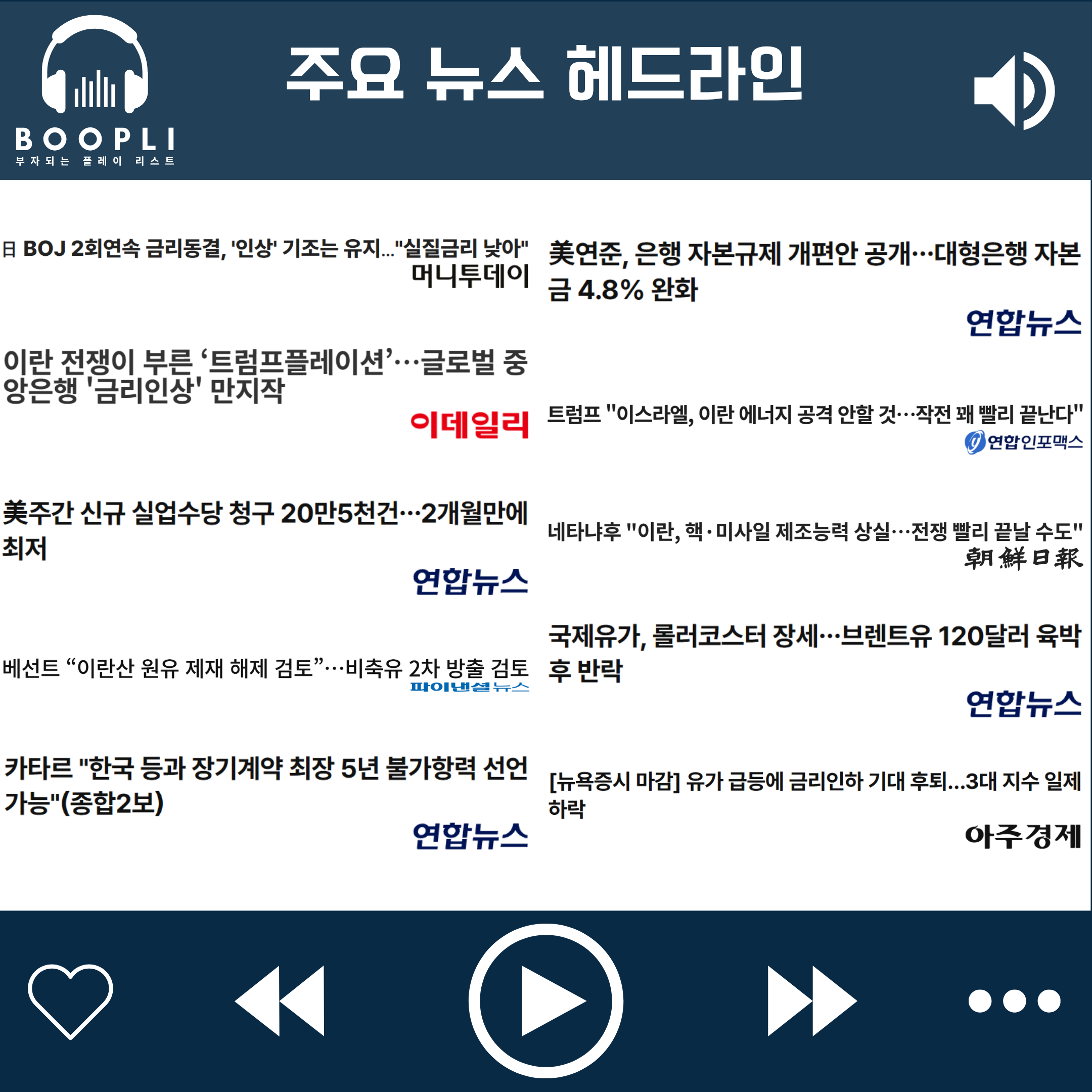 장 후반에는 네타냐후 이스라엘 총리가 이란의 핵 개발 및 미사일 생산 능력 약화를 언급하며 전쟁 조기 종료 가능성을 시사하자 국제유가가 상승폭을 반납하고 하락 전환, 이에 따라 국채금리 하락과 달러 약세가 동반되며 주요 지수는 일시적으로 상승 전환