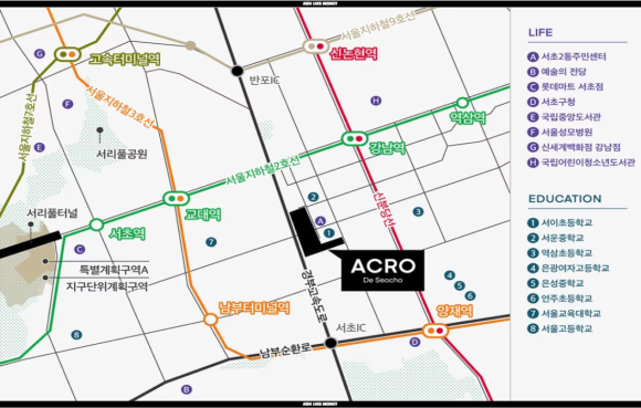브랜드는 "아크로라는 하이엔드 브랜드", 역세권, 1천세대가 넘는 대단지, 평지, 초품아, 신축이란 브역대평신초라는 장점을 모두 가진다. 근처 래미안 서초에스티지, 서초그랑자이, 래미안 리더스원을 봐도 33평이 30~40억 수준이다. 하지만 분양가가 17억~18억 수준이라면 정말 엄청난 로또이다. 25평 근처 시세가 30억을 넘는 수준인데, 10억대 후반이라면 시세차익만 20억 이상을 먹는 것이다. 이번 아파트에 당첨되는 사람은 그야말로 그냥 로또가아닌 초대박 로또에 당첨되는 격이다. 인생이 역전되는 로또라고 볼 수 있는데 대신, 조건이 까다로울 수 있다.