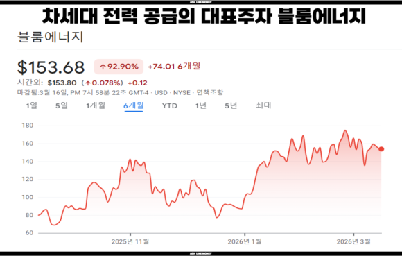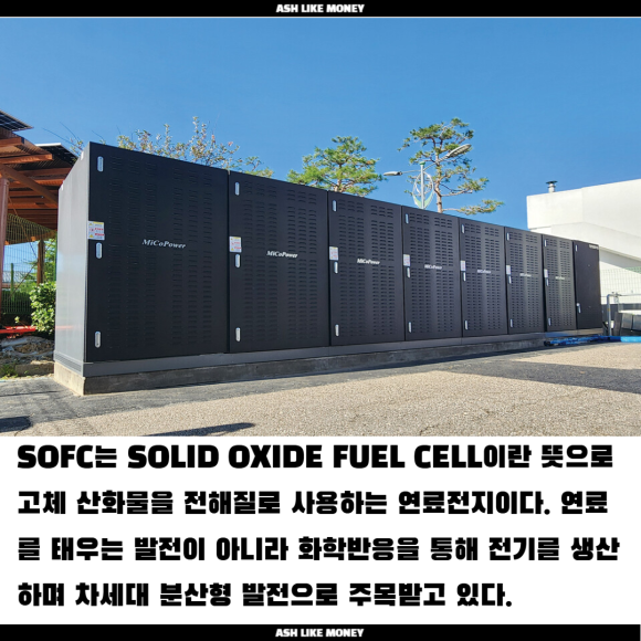 블룸에너지의 주가는 현재 153달러이며 코로나 시기 10~30달러에서 100달러도 못 넘고 횡보했던 것에 비하여 엄청난 상승을 보여주었다. 블룸에너지는 SOFC라는 수소를 전기화학적 반응을 통해 전력을 생산하고 고온에서도 작동하여 효율이 높고 연료 전환이 유연하다는 장점을 가진다. 대규모 송전망을 거치지 않고 데이터센터 인근에서 전력을 생산하여 손실도 적고 속도도 빠르고 양도 많다.