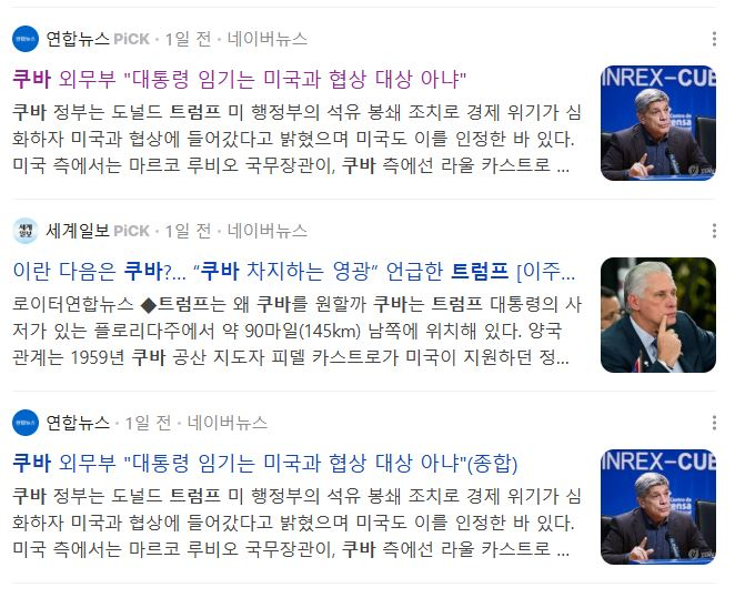 베네수엘라 및 이란 중동 전쟁 사태에 이어 쿠바까지 트럼트 대통령은 전 세계 정세에 미국을 배경으로 자신의 힘을 과시하고 있습니다. 어디까지가 정의이고 어디까지가 야욕인지, 현재 트럼프 대통령의 이런 횡보들에 정당성이 현저히 부족한 것 같네요.