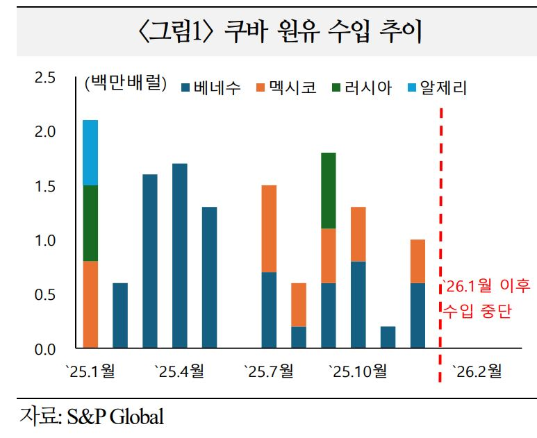 - 베네수엘라는 1월 3일 마두로 대통령이 압송된 뒤, 미국의 통제로 쿠자에 대한 원유 공급을 금지. 멕시코, 러시아 등도 추가관세 우려로 원유 수출을 중단